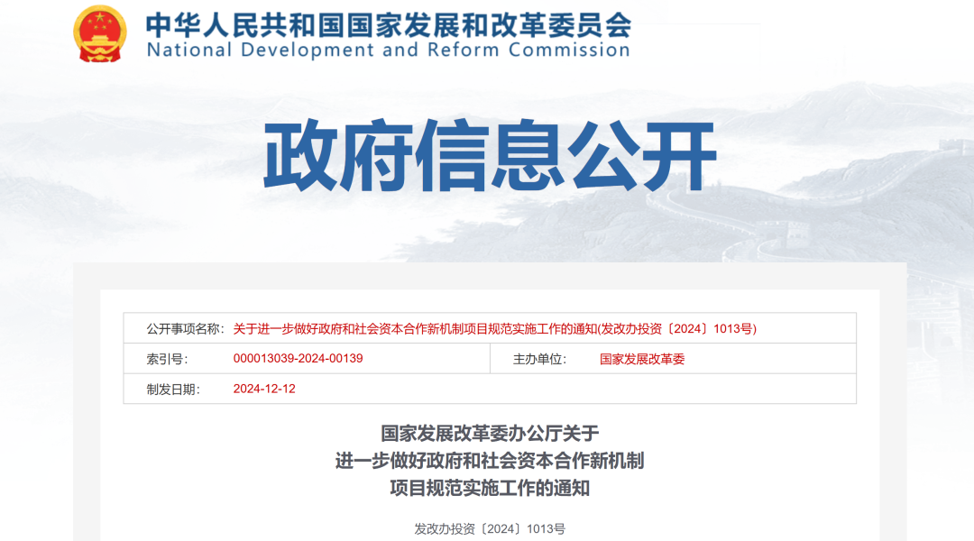 政策丨國(guó)家發(fā)改委:做好PPP新機(jī)制項(xiàng)目規(guī)范實(shí)施工作,禁止以盤活存量資產(chǎn)為名將特許經(jīng)營(yíng)模式異化