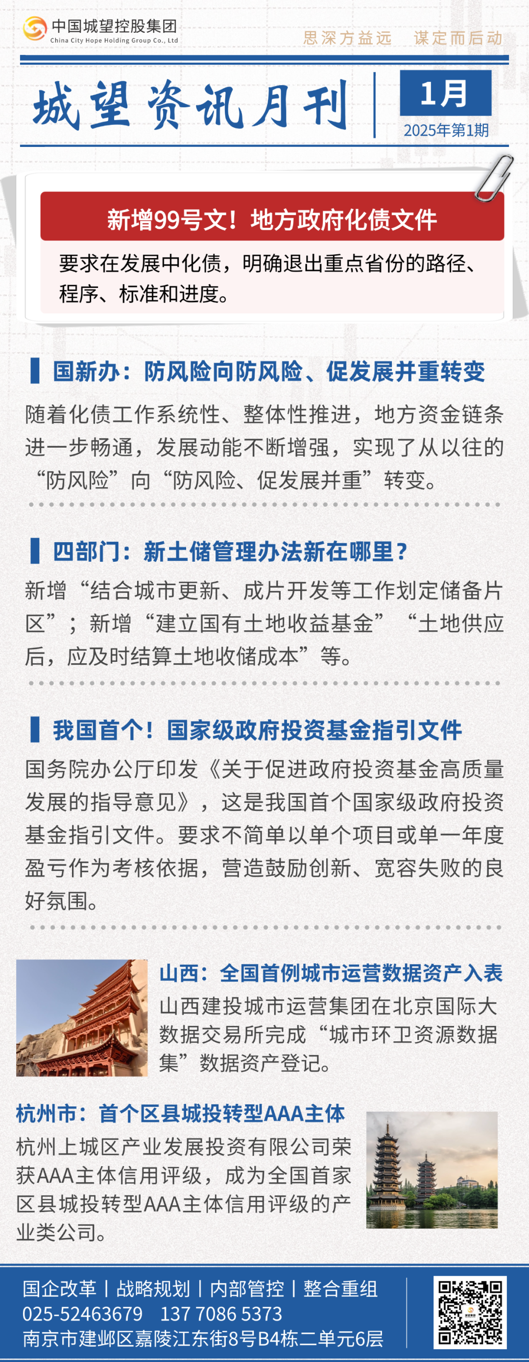 在國新辦1月10日舉行的新聞發(fā)布會上,財(cái)政部副部長廖岷,綜合司司長林澤昌、預(yù)算司司長王建凡出席發(fā)布會,介紹財(cái)政高質(zhì)量發(fā)展成效有關(guān)情況。發(fā)布會指出,防風(fēng)險(xiǎn)、促發(fā)展協(xié)同性大為增強(qiáng)。隨著化債工作系統(tǒng)性、整體性推進(jìn),地方資金鏈條進(jìn)一步暢通,發(fā)展動能不斷增強(qiáng),實(shí)現(xiàn)了從以往的“防風(fēng)險(xiǎn)”向“防風(fēng)險(xiǎn)、促發(fā)展并重”轉(zhuǎn)變。為落實(shí)9月26日中央政治局會議精神,推出了一攬子增量政策,主要包括四項(xiàng):一是加力支持地方化解政府債務(wù)風(fēng)險(xiǎn),二是發(fā)行特別國債支持國有大行補(bǔ)充核心一級資本,三是支持推動房地產(chǎn)市場止跌回穩(wěn),四是加大對重點(diǎn)群體的支持保障力度。三、全國城市更新工作部署視頻會議:有力有序有效推進(jìn)城市更新重點(diǎn)任務(wù)