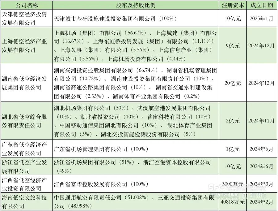 2024年以來,上海、湖南、天津、廣東、浙江、江西、海南等省份均成立了由地方國企控股的低空經(jīng)濟公司。