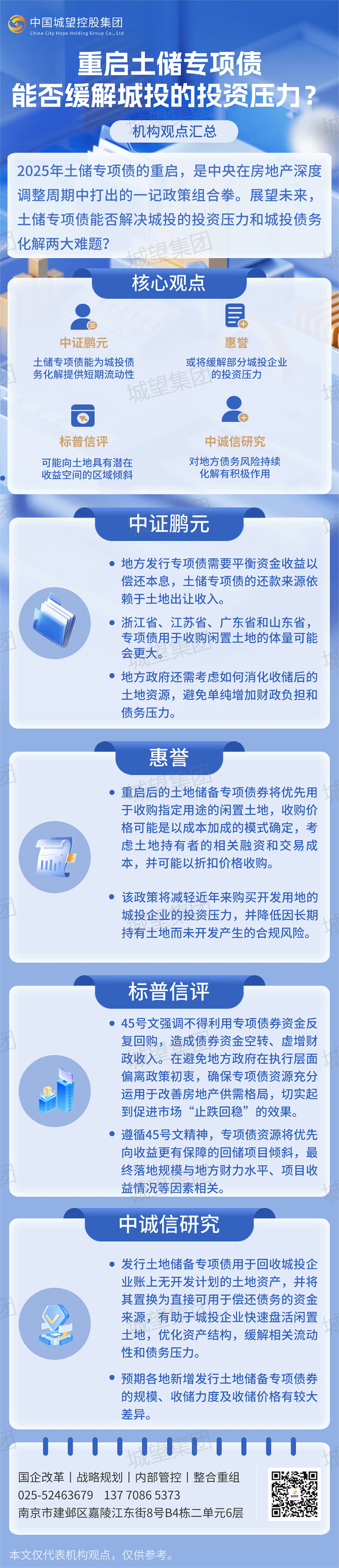 需注意的是,地方發(fā)行專項(xiàng)債需要平衡資金收益以償還本息,土儲(chǔ)專項(xiàng)債的還款來源依賴于土地出讓收入,地方政府還需考慮如何消化收儲(chǔ)后的土地資源,避免單純?cè)黾迂?cái)政負(fù)擔(dān)和債務(wù)壓力,未來其成效仍取決于資產(chǎn)定價(jià)博弈、地方政府的資源整合能力及土地市場(chǎng)的復(fù)蘇節(jié)奏。
