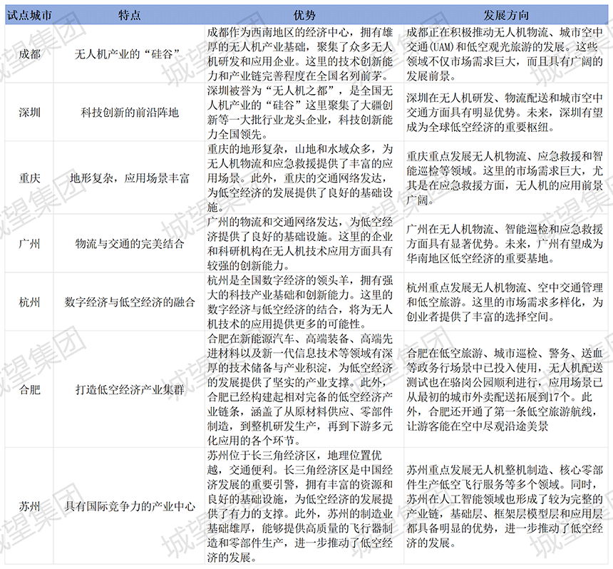 試點(diǎn)文件對航線和區(qū)域進(jìn)行了詳細(xì)規(guī)劃,并授權(quán)部分地方政府管理600米以下空域。這些城市將成為未來低空經(jīng)濟(jì)發(fā)展的核心區(qū)域。