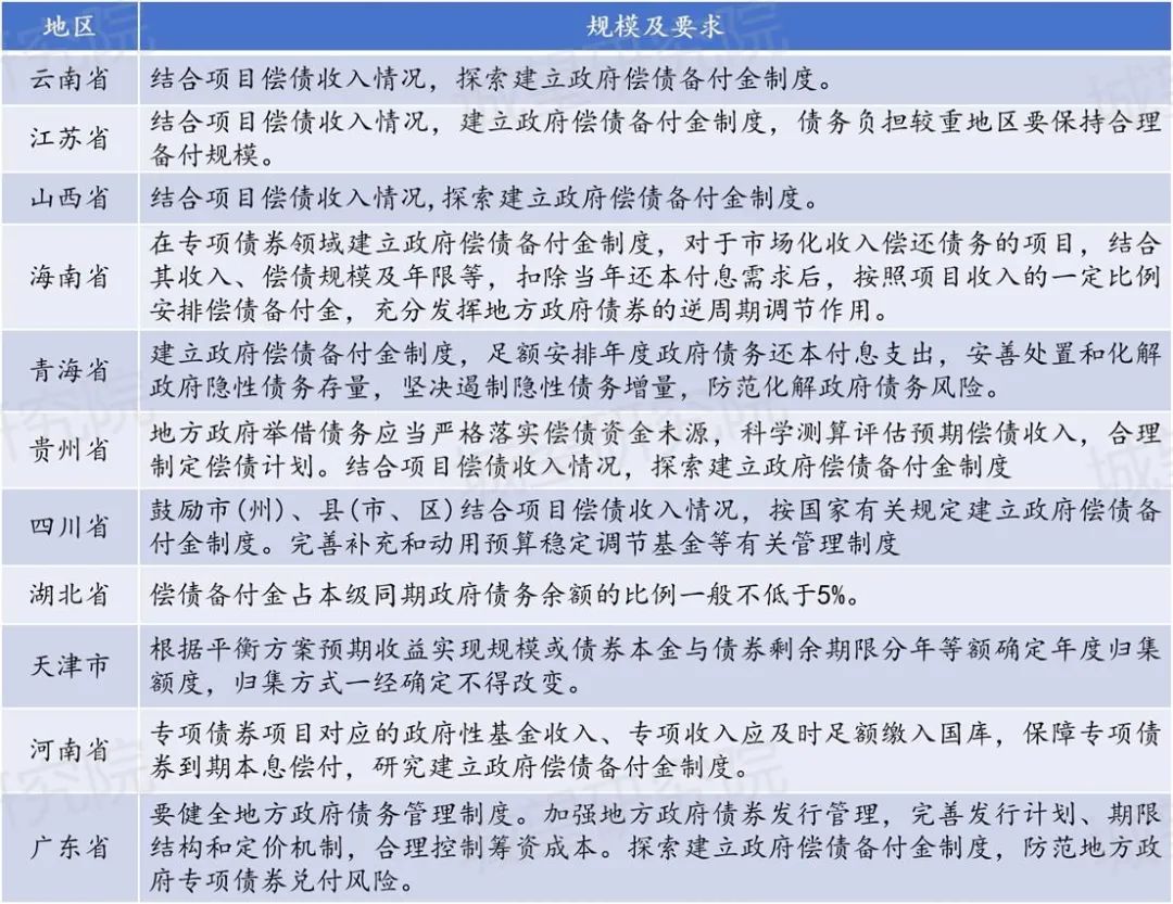 2024年,《國務(wù)院辦公廳關(guān)于優(yōu)化完善地方政府專項債券管理機制的意見》(國辦發(fā)〔2024〕52號)鼓勵有條件的地區(qū)建立專項債償債備付金制度,“自審自發(fā)”試點地區(qū),包括北京市、上海市、江蘇省、浙江省(含寧波市)、安徽省、福建省(含廈門市)、山東省(含青島市)、湖南省、廣東?。ê钲谑校?、四川省、河北雄安新區(qū),要加快建立償債備付金制度。
