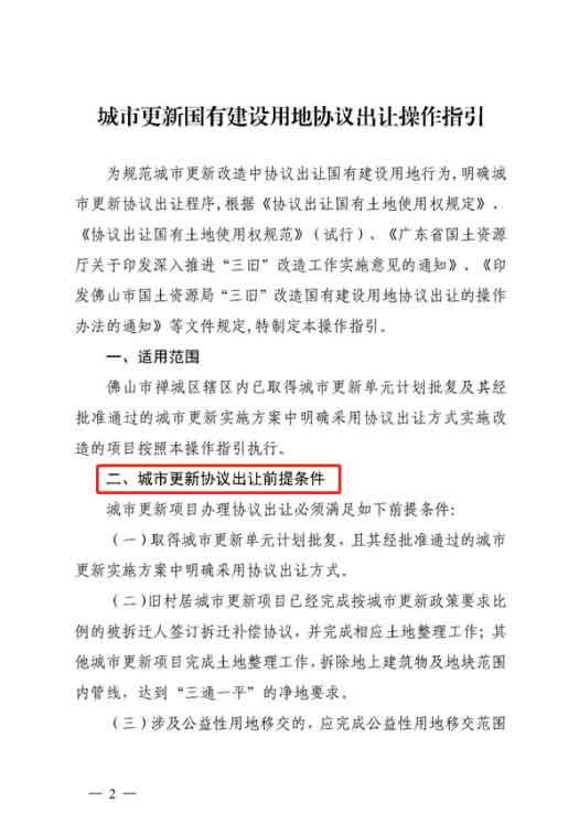 城市更新協(xié)議出讓操作指引——以佛山市為例