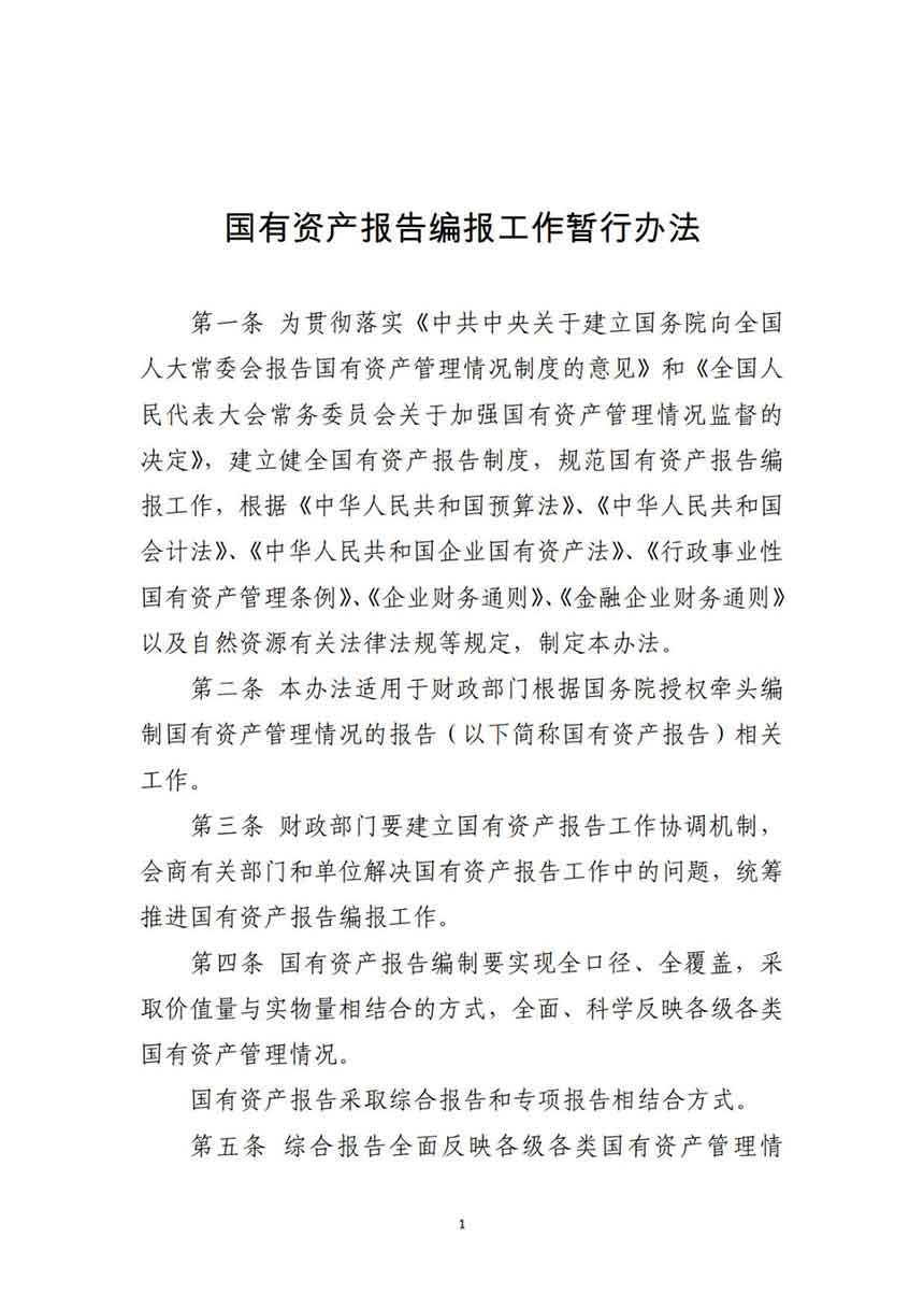 關(guān)于印發(fā)《國(guó)有資產(chǎn)報(bào)告編報(bào)工作暫行辦法》的通知